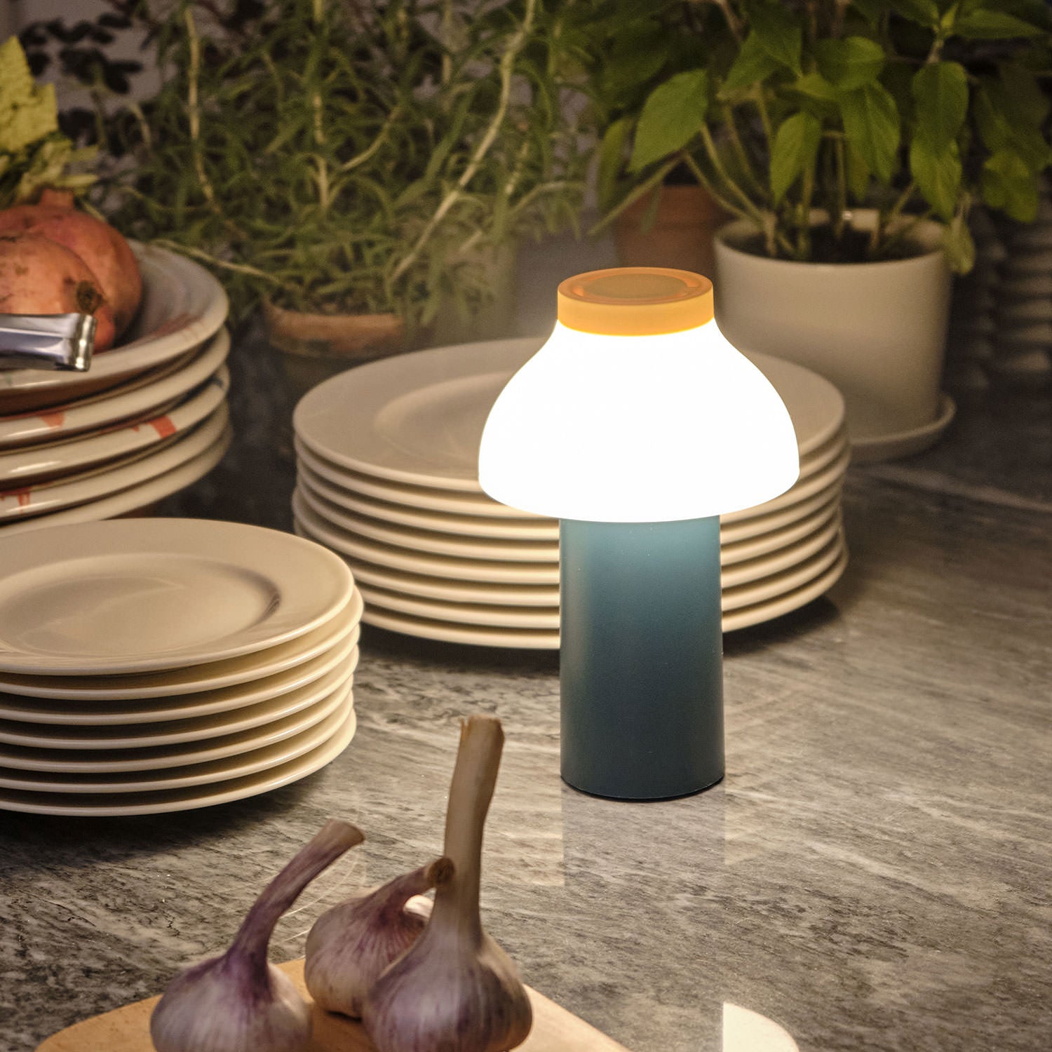 Pierre Charpin’s PC Portable Lamp is a refined and portable freestanding lamp for indoor and outdoor use. Constructed in robust plastic and featuring a matte scratch- and water- resistant finish, its battery-powered design gives the freedom and flexibility to move it anywhere. The light source is hidden from view by a polycarbonate diffuser, available with both downlight and ambient output options, depending on the desired use.