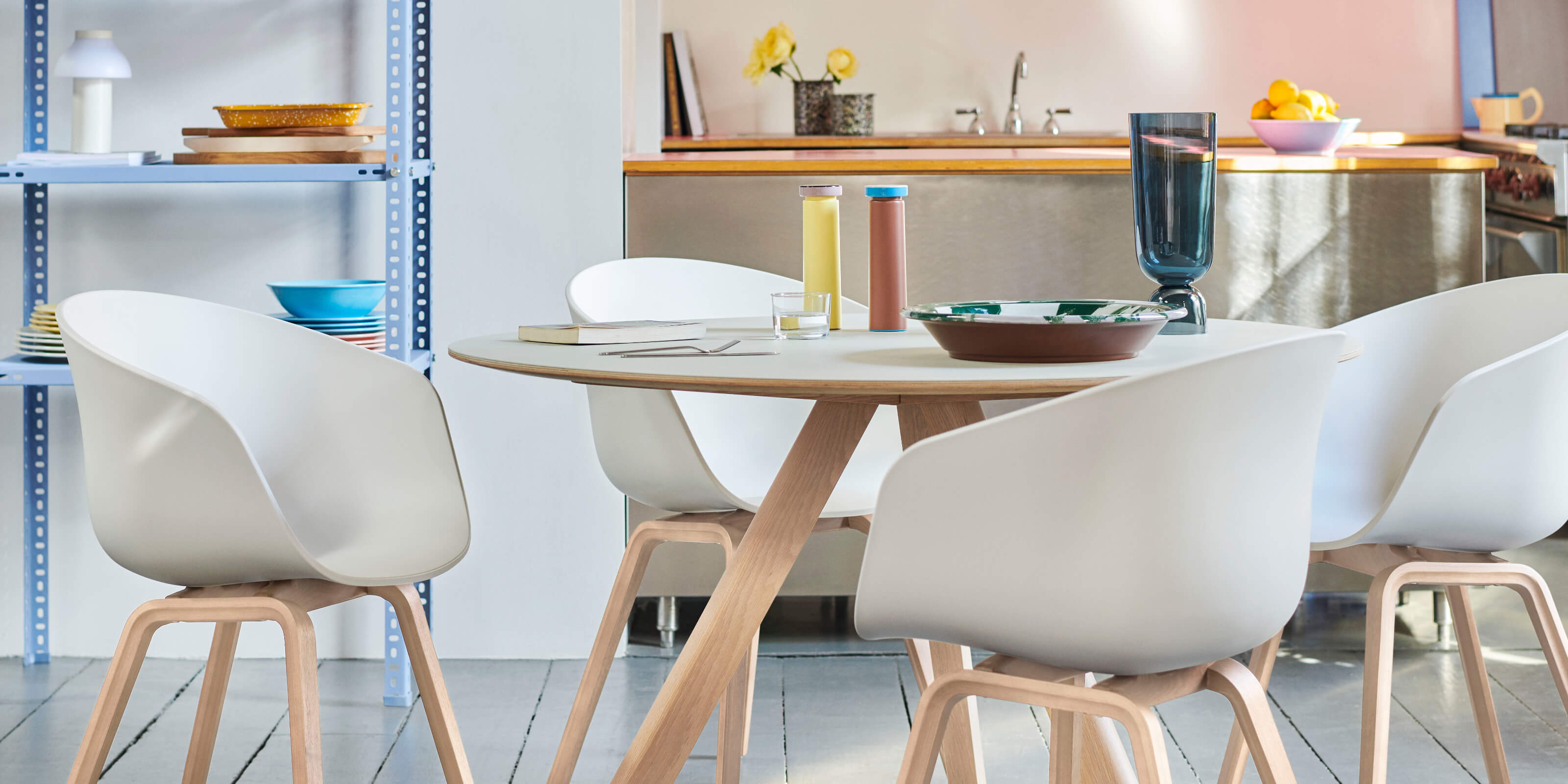 Update your kitchen with the latest styles from HAY, including the new Sowden Juicer, a continuation of our collaboration with designer George Sowden, and Borosilicate Mugs and French Press Brewer. Choose from new glassware to functional kitchen pieces such as the Half & Half Chopping Board for small updates that elevate the kitchen.
