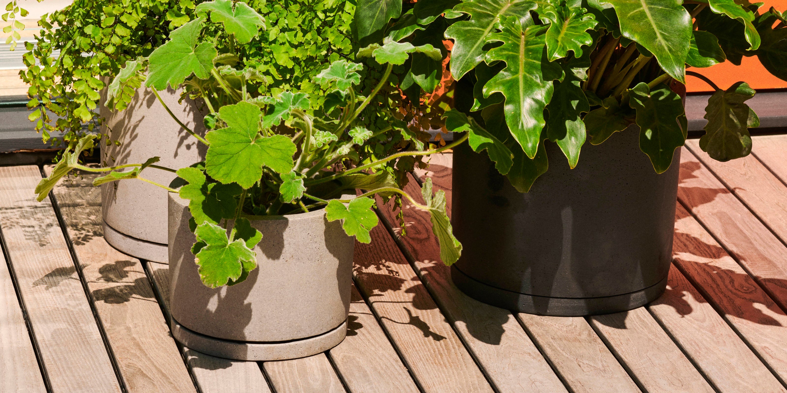 This collection of simple straight plant pots from the Danish homeware brand is made from a lightweight and durable polystone. For extra protection they feature an inside coating. Featuring a drainage in the bottom for overfill to drain into the saucer.