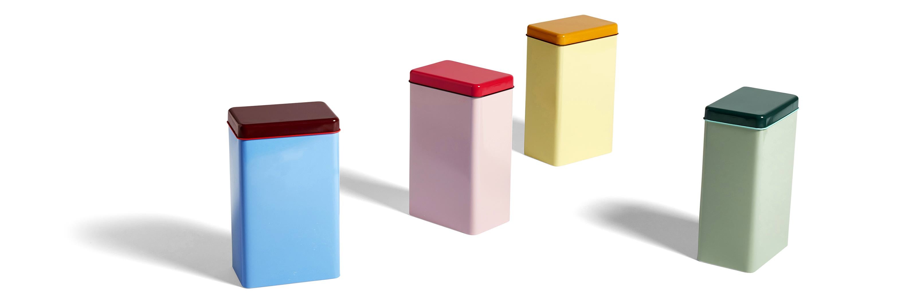 The Tin by Sowden from HAY is crafted to be a container for coffee or dry foods, in three soft color palettes with complimentary lids, these containers are a sure fire way to liven up your kitchen aesthetic.